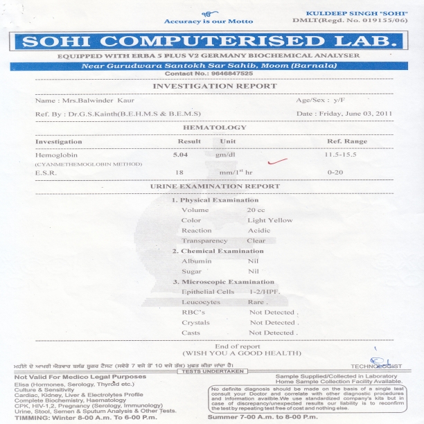 esjk [kwu iwjk ugha Fkk gksrkA eSa dbZ LFkkuksa ls nok [kk;h ijUrq esjk [kwu iwjk u gqvkA MkDVj egaxs egaxs Vhds yxk dj gV x, ijUrq esjh rdyhQ Bhd u gqbZA ,l ih gsyFkds;j lsuVj dh nh nok ds lkFk eSa vc fcYdqy Bhd gwбA esjk [kwu iwjk gks x;k gSA