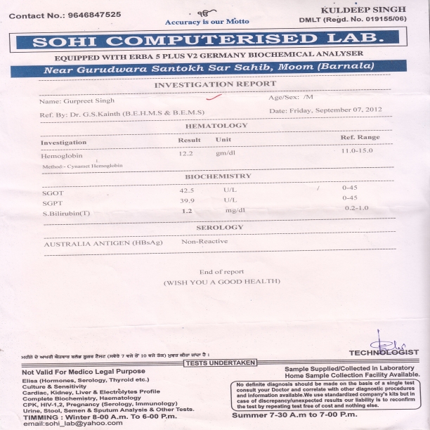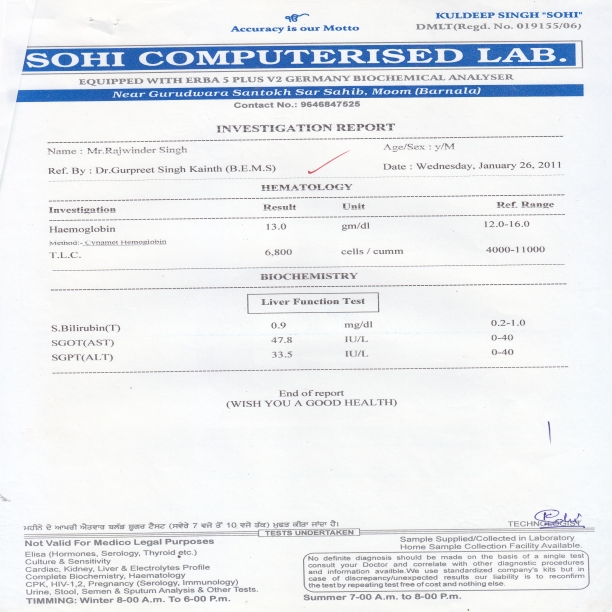 eq>s gSisVkbZVl&ch FkkA esjk 'kjhj fnuksa fnu detksj gks jgk FkkA ysVкhu ds }kjk tho vkrs Fks] gVus dk uke ugha Fks ysrsA cM+h nok,б [kk;ha ijUrq vkjke u vk;kA ,l ih gsyFkds;j lsuVj okyksa us eq>s lHkh jksxksa ds fy, nok nhA vc eSa fcYdqy Bhd gwбA esjk HBS Elisa Hkh dkQh de gks x;k gSA eSa MkDVj lkgc dk /kU;okn djrk gwбA